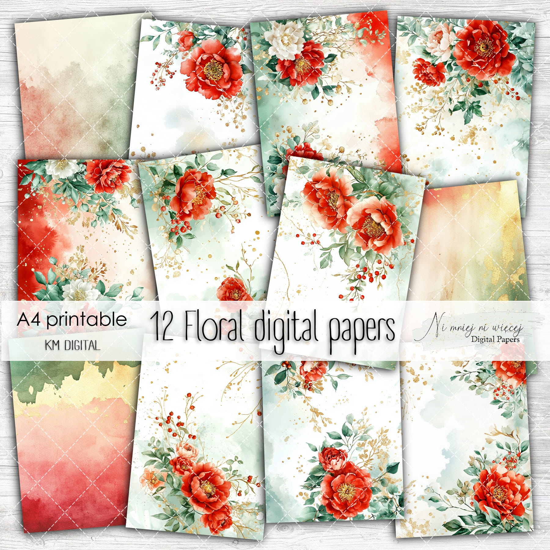 Kolekcja zawiera 12 plików cyfrowych do wydruku w rozmiarze A4. Pliki są wysokiej jakości 300DPI.