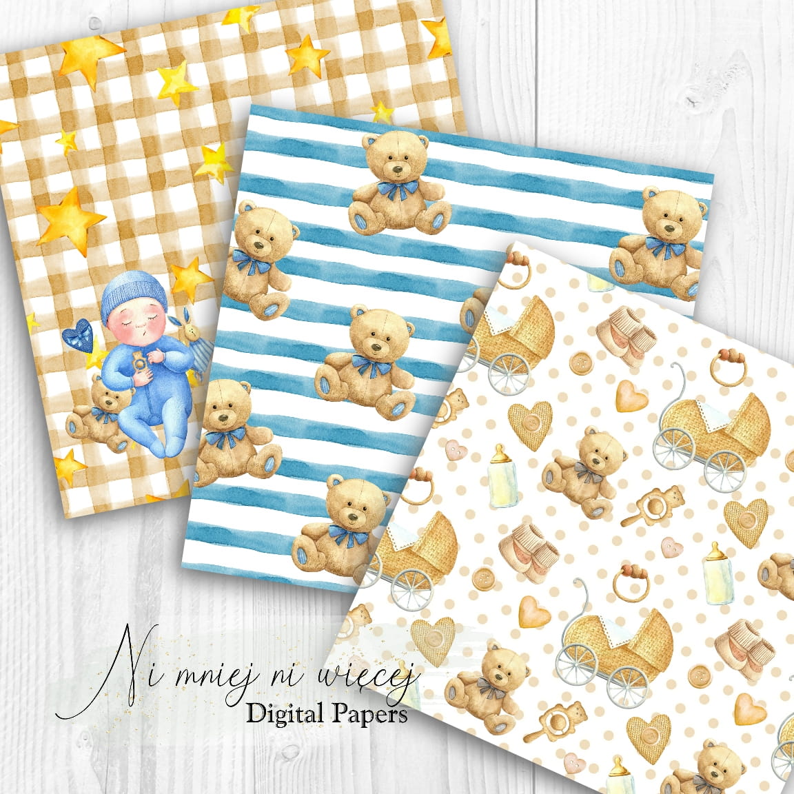 Kolekcja "Baby Boy" zawiera 8 arkuszy plików cyfrowych do wydruku w rozmiarze kwadrat. Pliki są wysokiej jakości 300DPI, pod wydruk nawet w wielkości 30 x 30 cm.