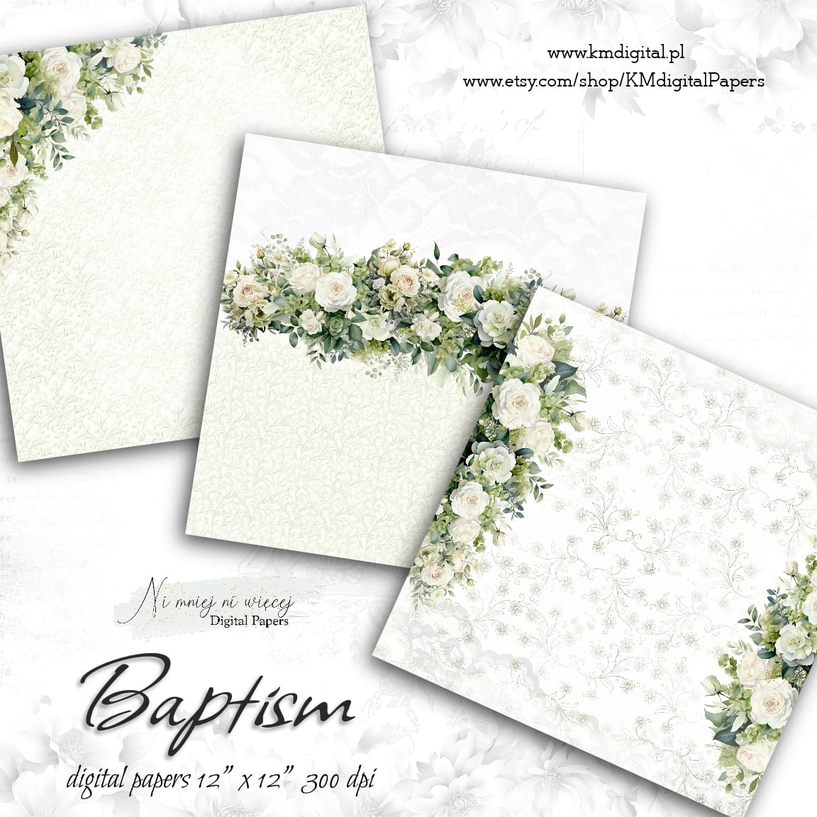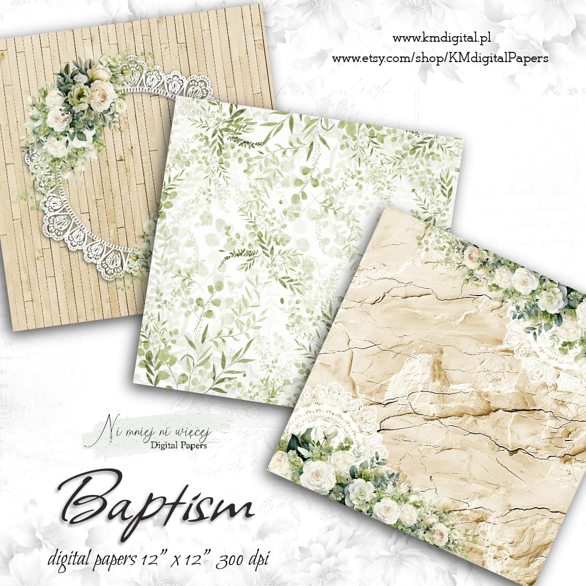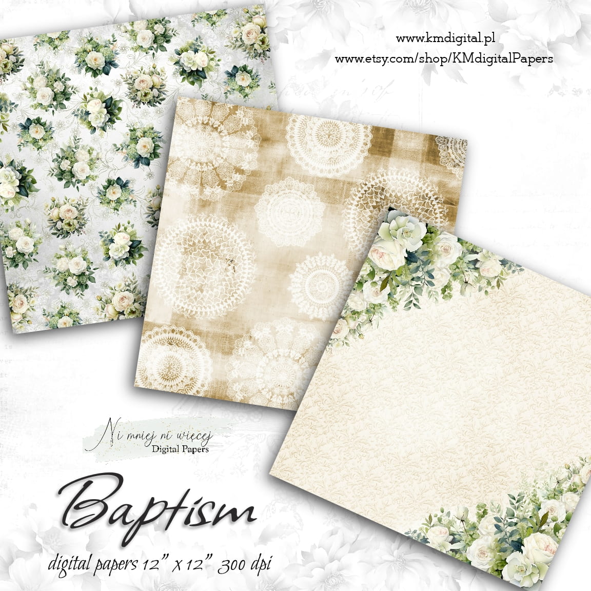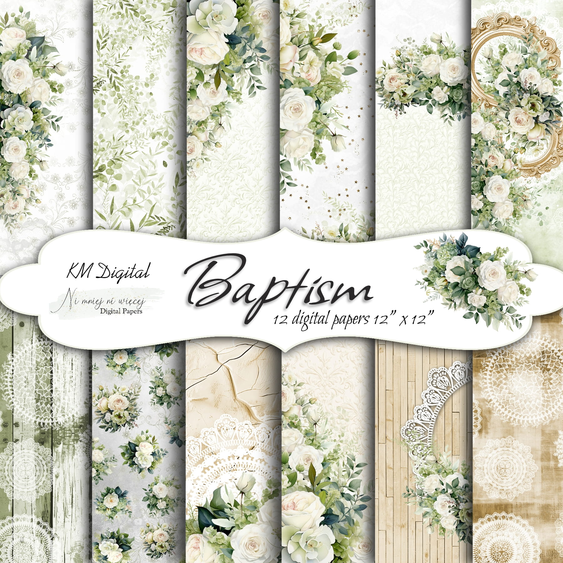 Kolekcja "Baptism" zawiera 12 plików cyfrowych do samodzielnego wydruku w rozmiarze kwadrat. Pliki są wysokiej jakości 300DPI.