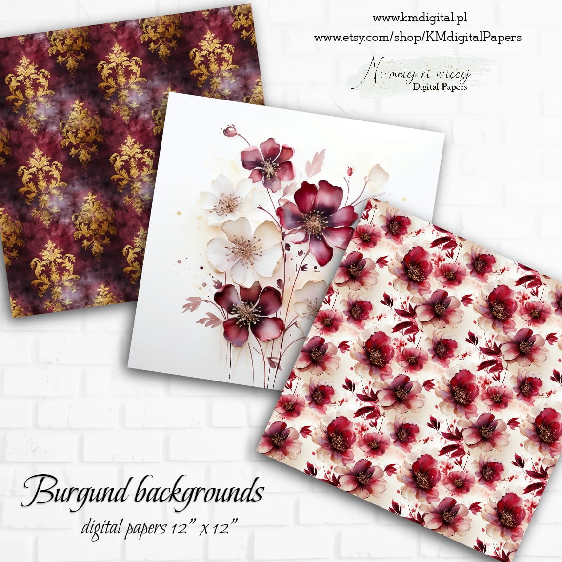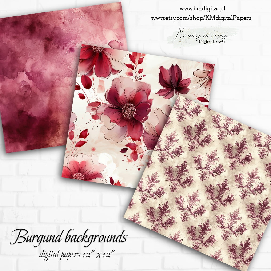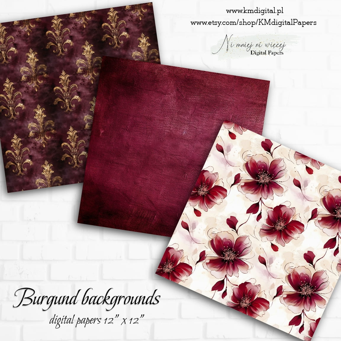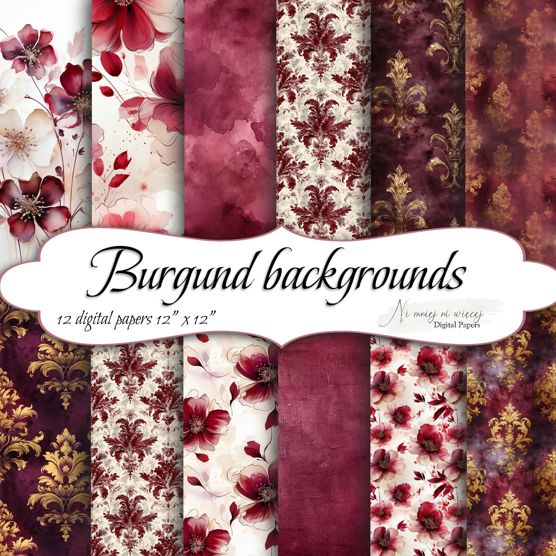 Kolekcja "Burgund" zawiera 12 arkuszy plików cyfrowych do wydruku w rozmiarze kwadrat. Pliki są wysokiej jakości 300DPI.
