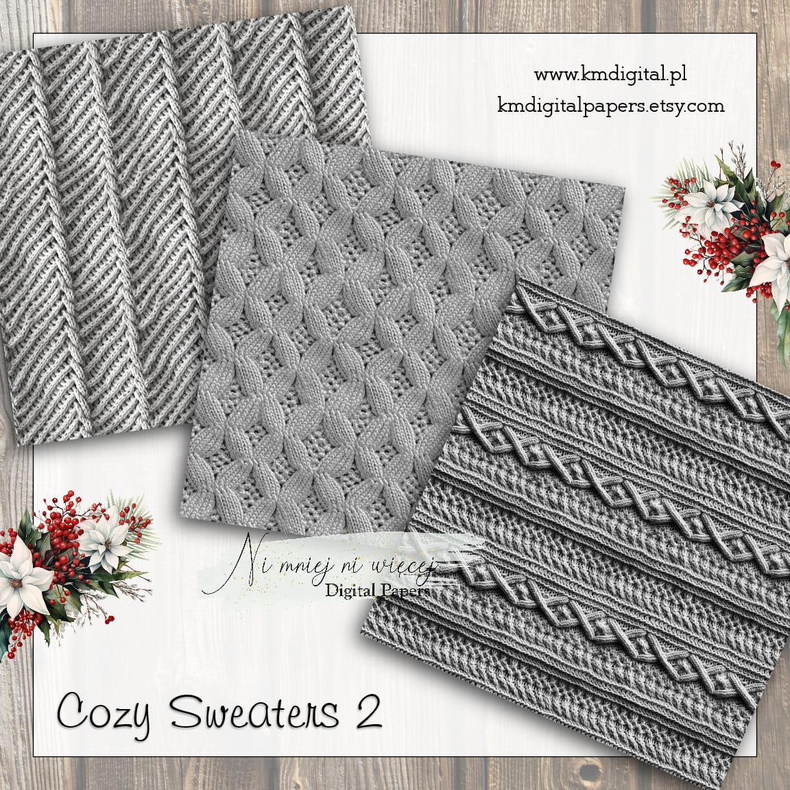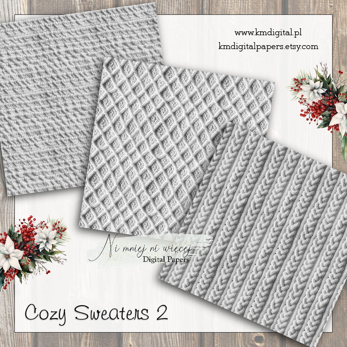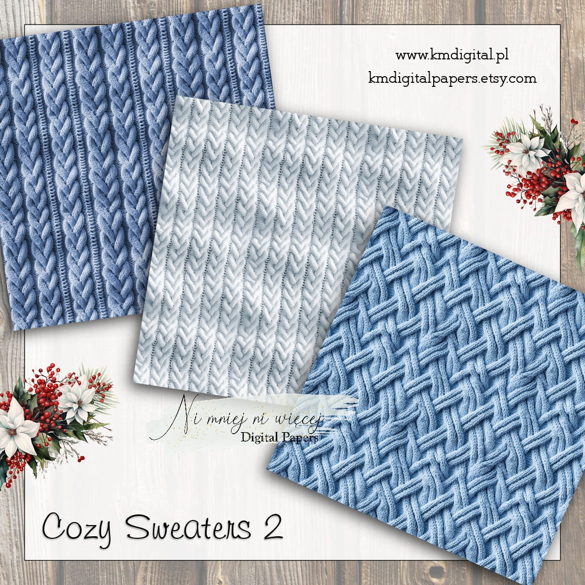 Kolekcja "Cozy Sweaters 2" zawiera 12 arkuszy plików cyfrowych do wydruku w rozmiarze kwadrat. Pliki są wysokiej jakości 300DPI.