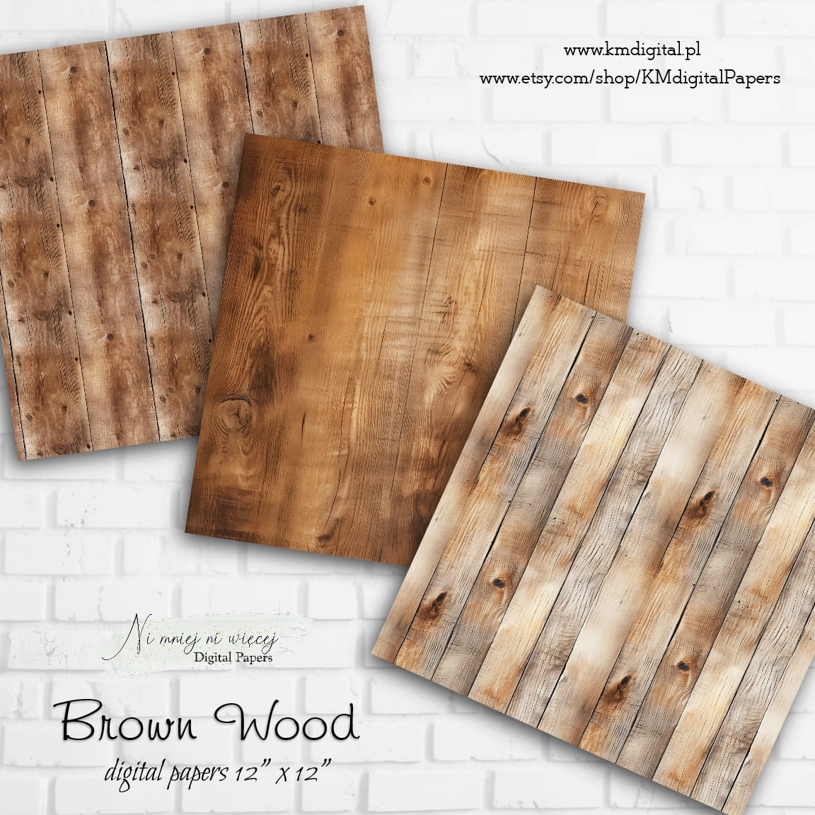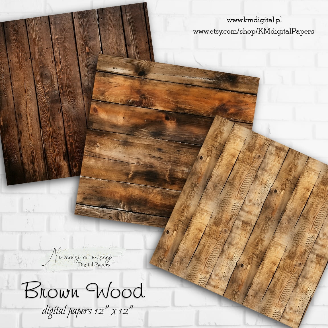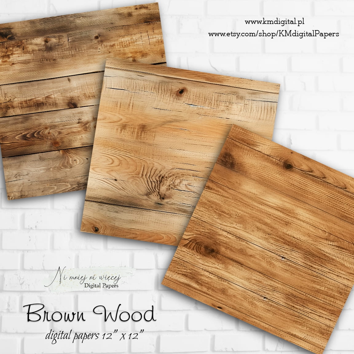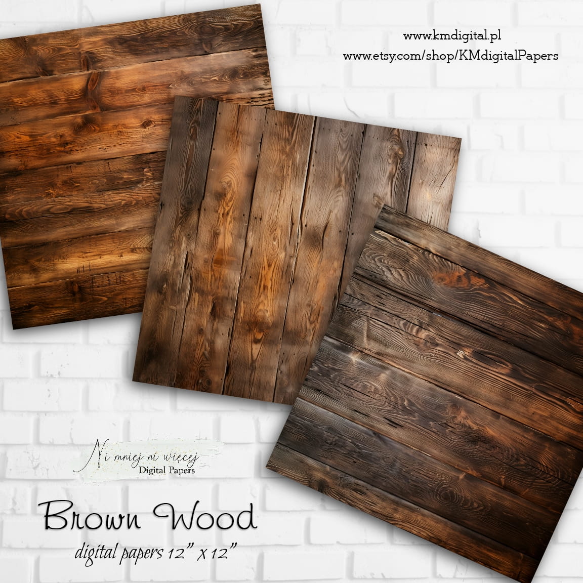 Kolekcja "Brown Wood" zawiera 12 arkuszy plików cyfrowych do wydruku w rozmiarze kwadrat. Pliki są wysokiej jakości 300DPI.
