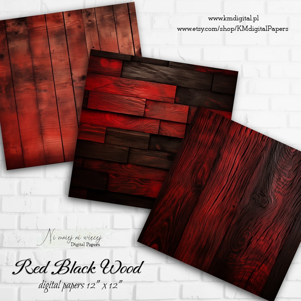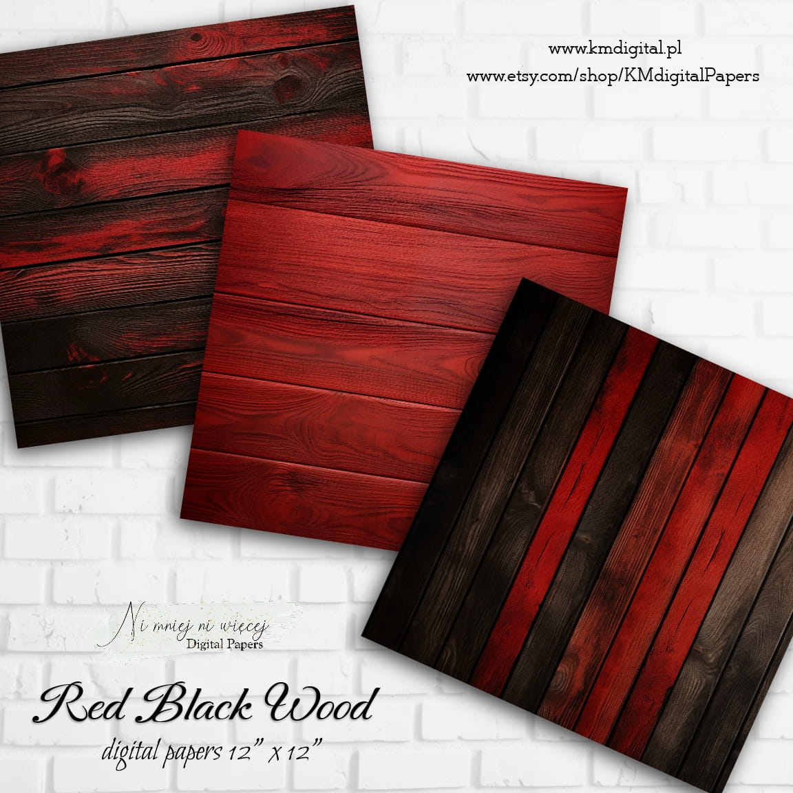 Kolekcja "Black Red Wood" zawiera 12 arkuszy plików cyfrowych do wydruku w rozmiarze kwadrat. Pliki są wysokiej jakości 300DPI.