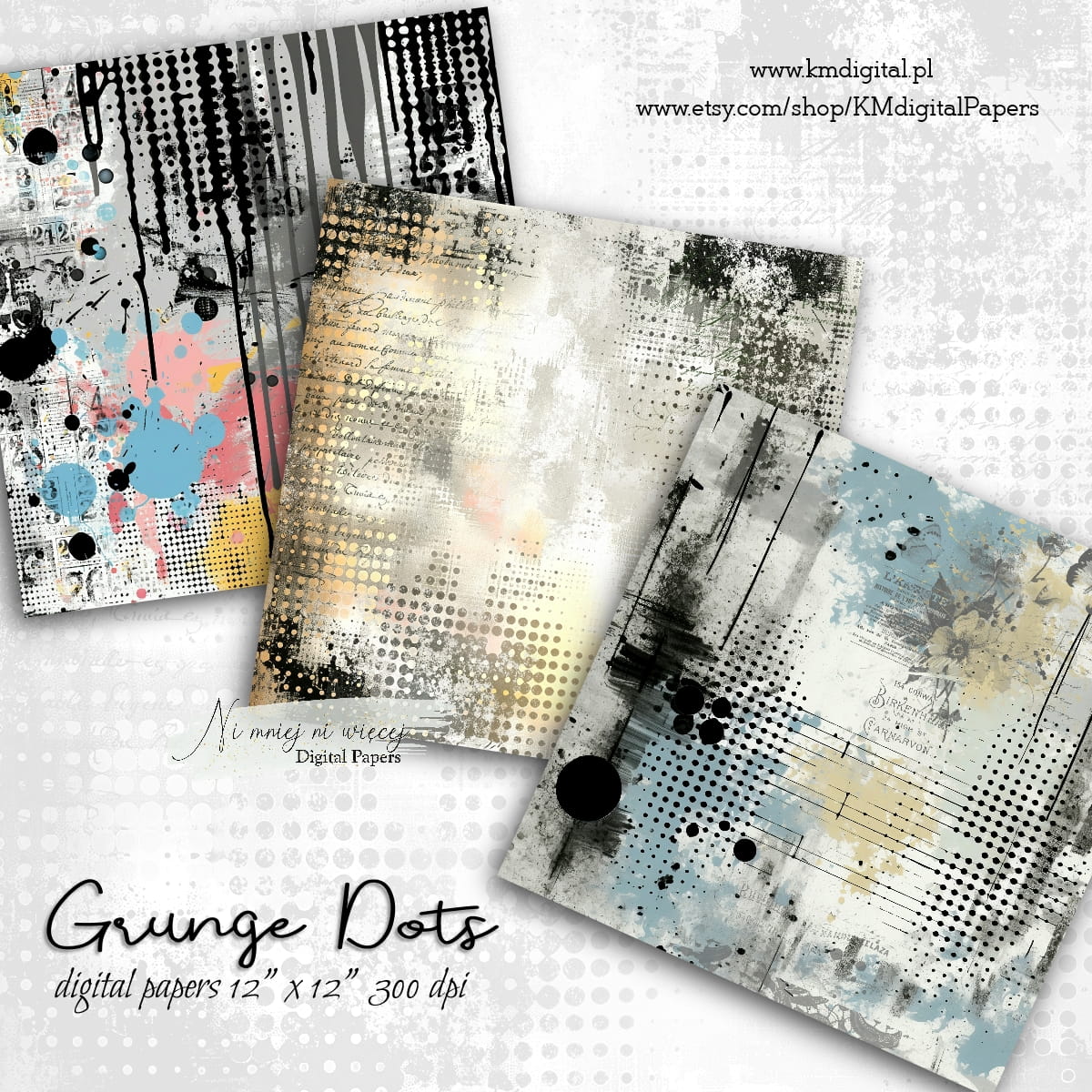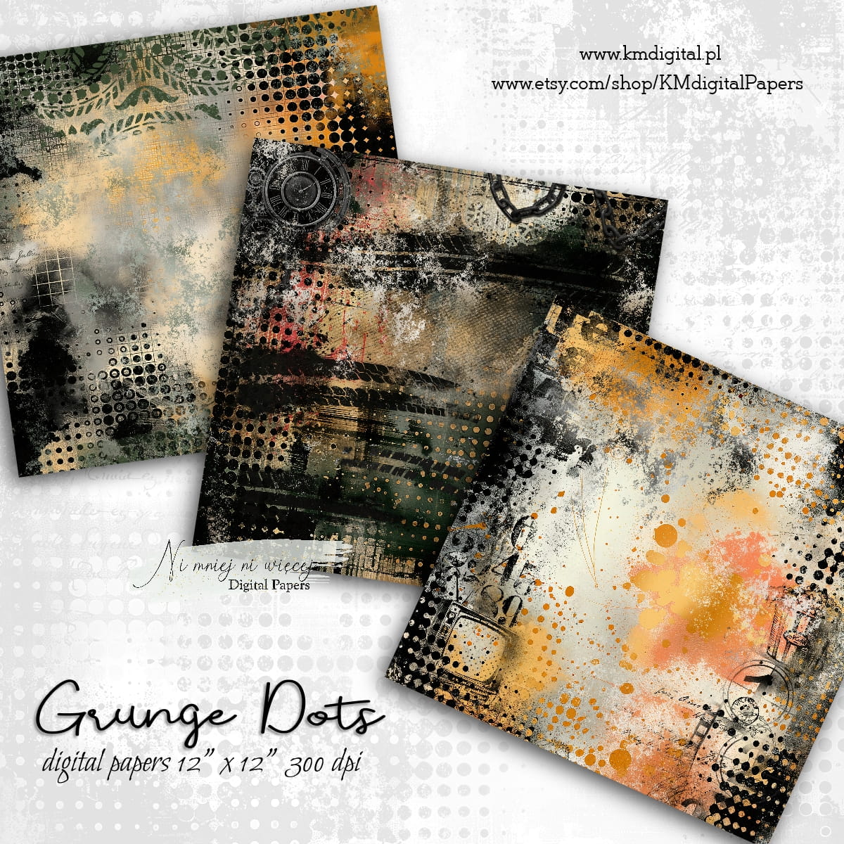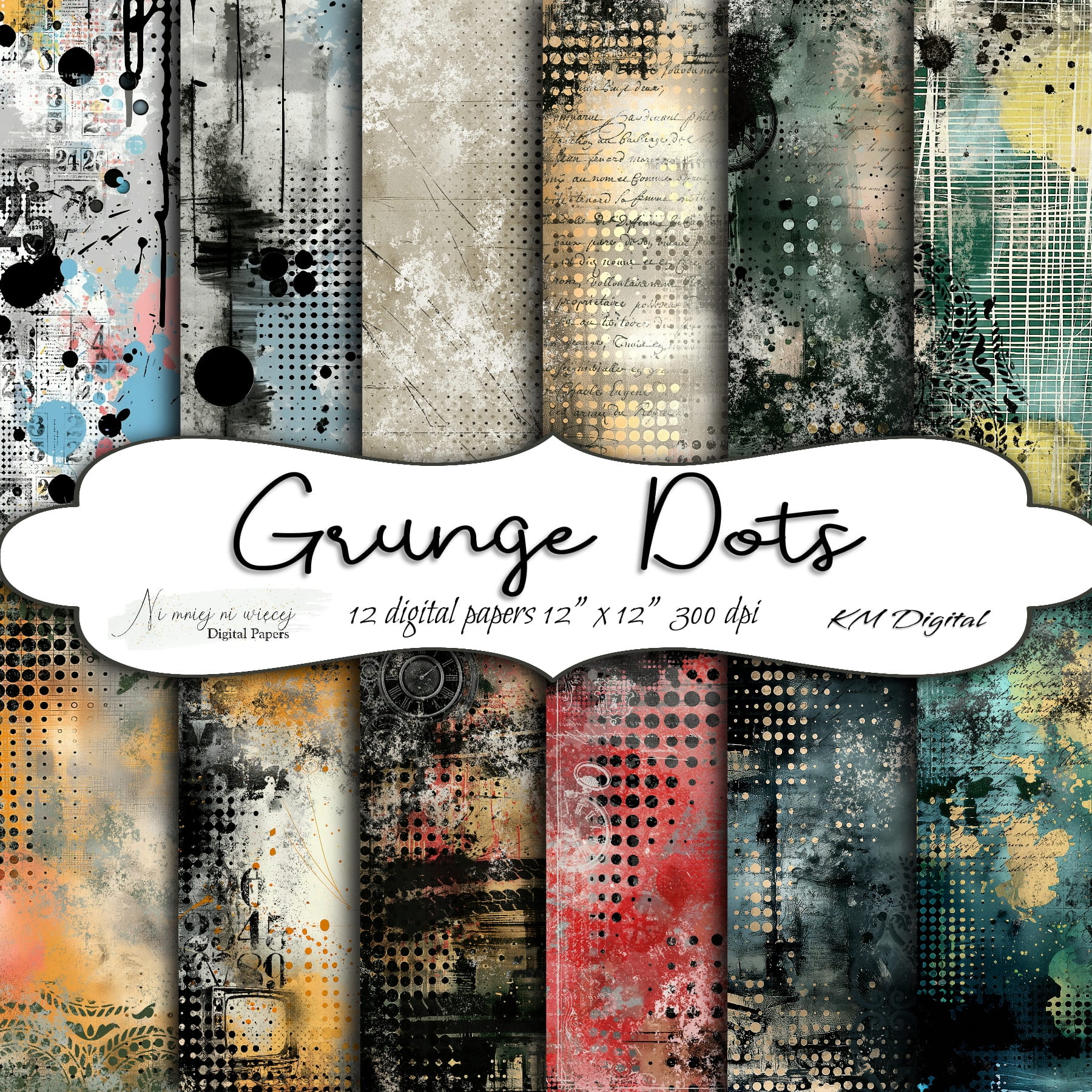 Kolekcja "Grunge Dots" zawiera 12 arkuszy plików cyfrowych do wydruku w rozmiarze kwadrat. Pliki są wysokiej jakości 300DPI.
