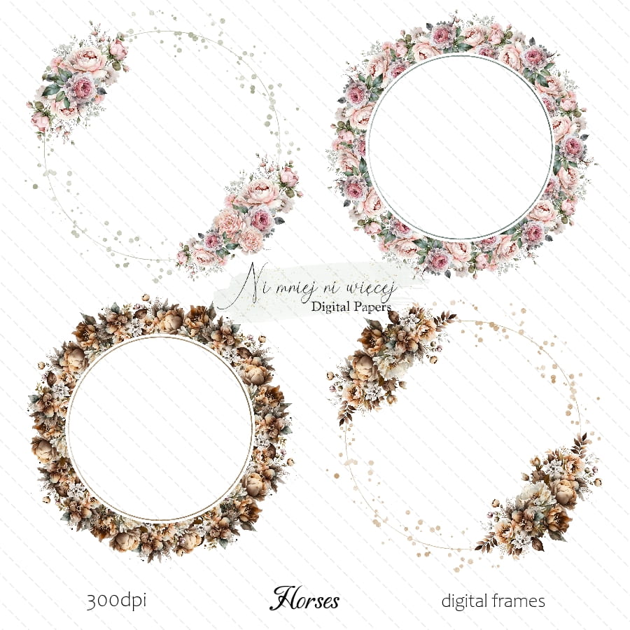 Kolekcja 4 ramek z kolekcji Horses w formacie PNG, jakości 300 DPI.