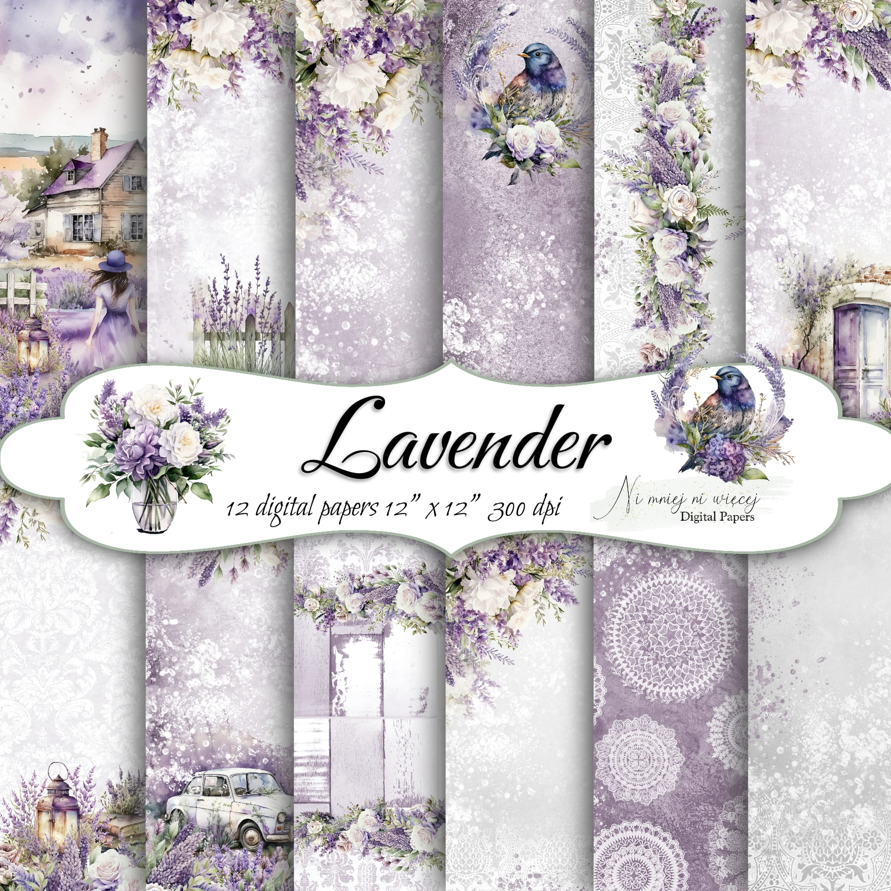 Kolekcja "Lavender" zawiera 12 arkuszy plików cyfrowych do wydruku w rozmiarze kwadrat. Pliki są wysokiej jakości 300DPI.