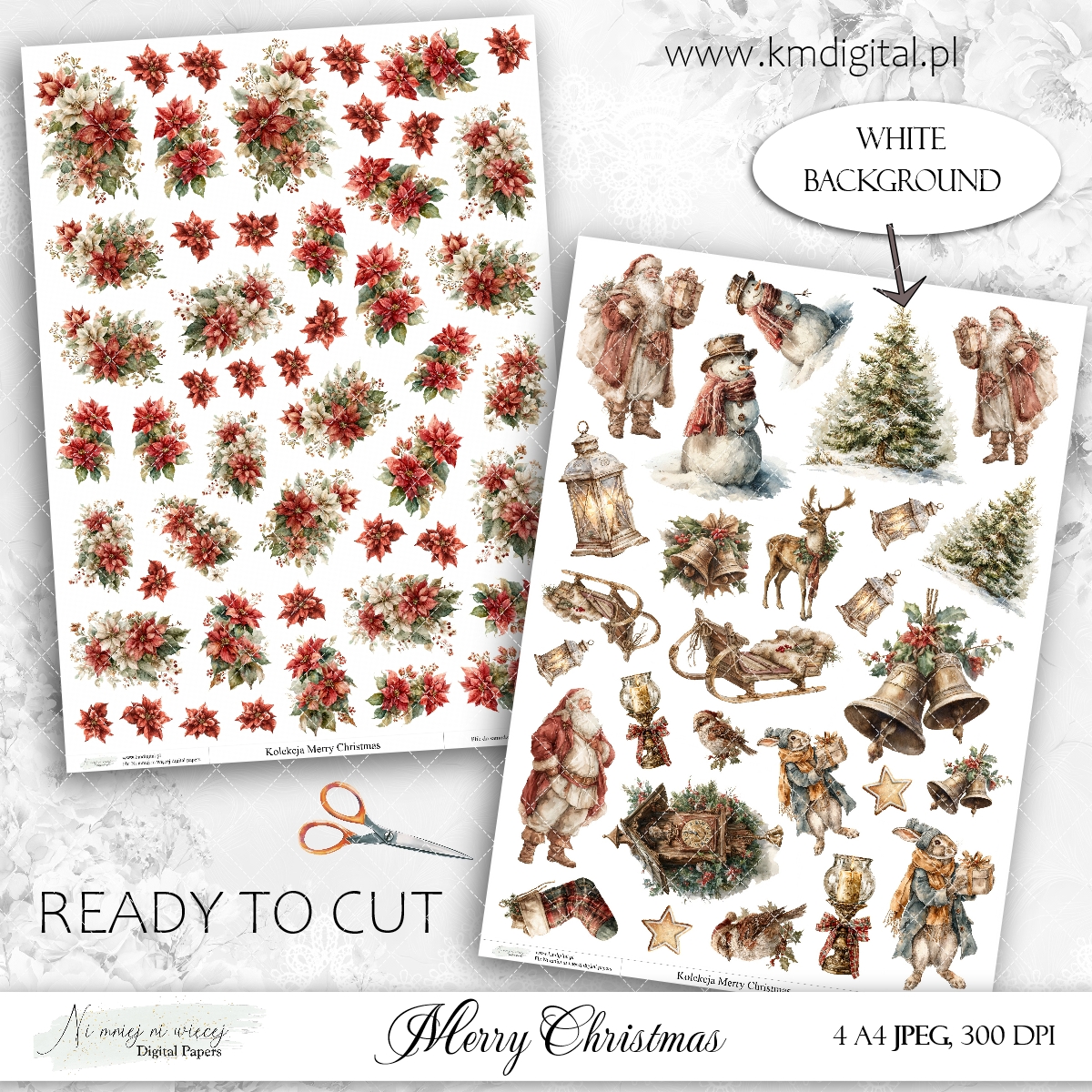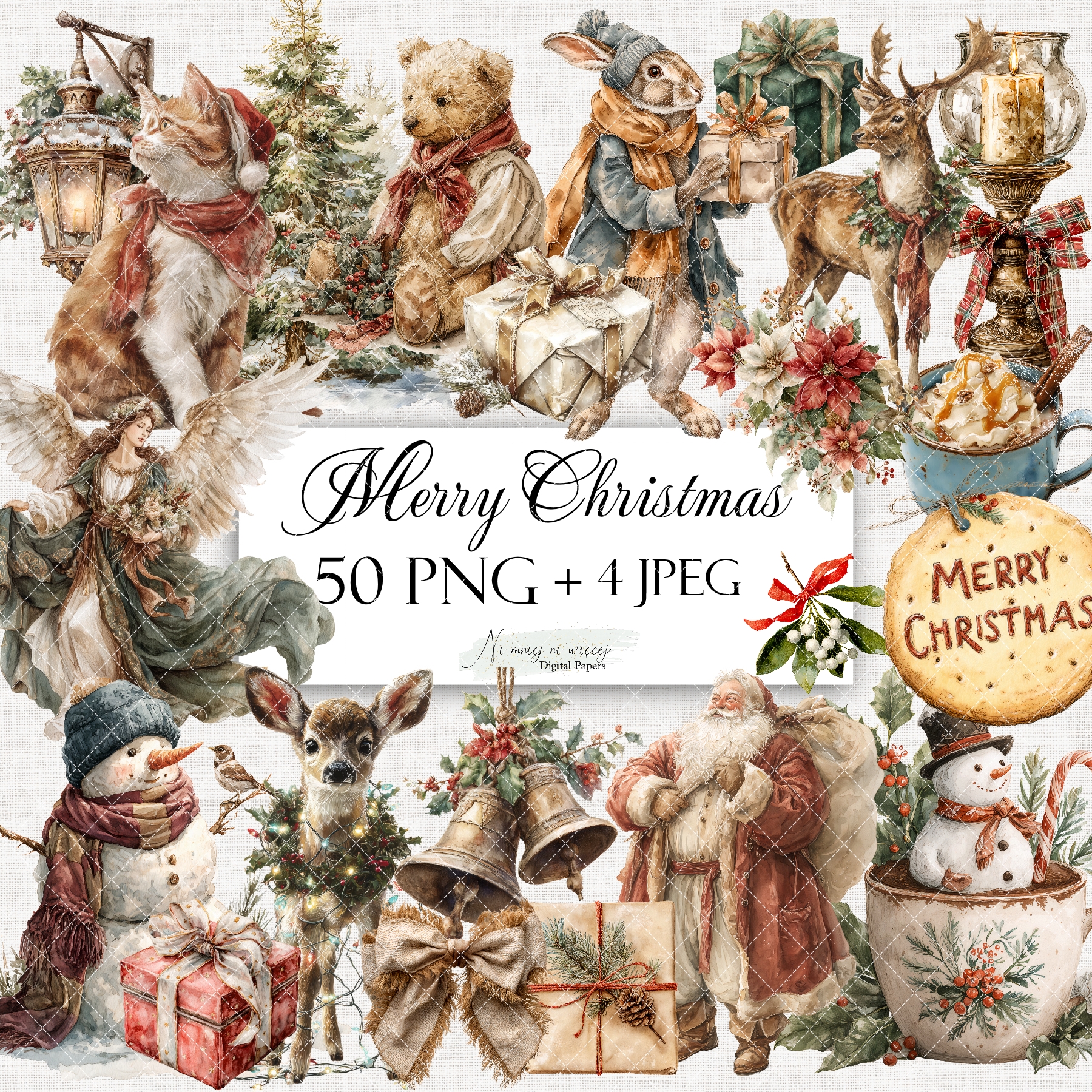 Merry Christmas - zestaw grafik do druku PNG + JPEG