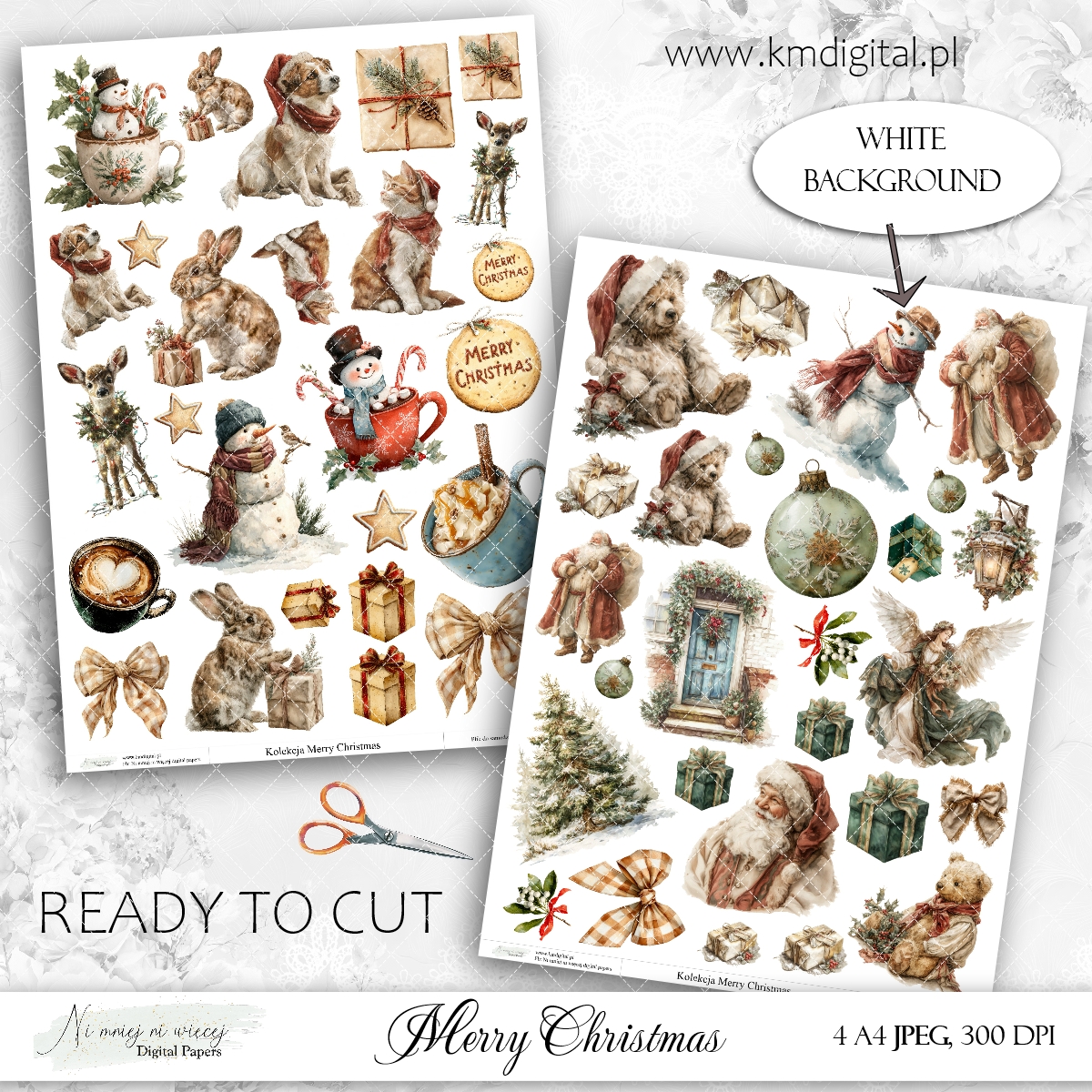 Kolekcja zawiera 4 arkusze A4 JPEG grafik do samodzielnego wydruku plus osobno 50 plików PNG. Pliki są wysokiej jakości 300DPI.