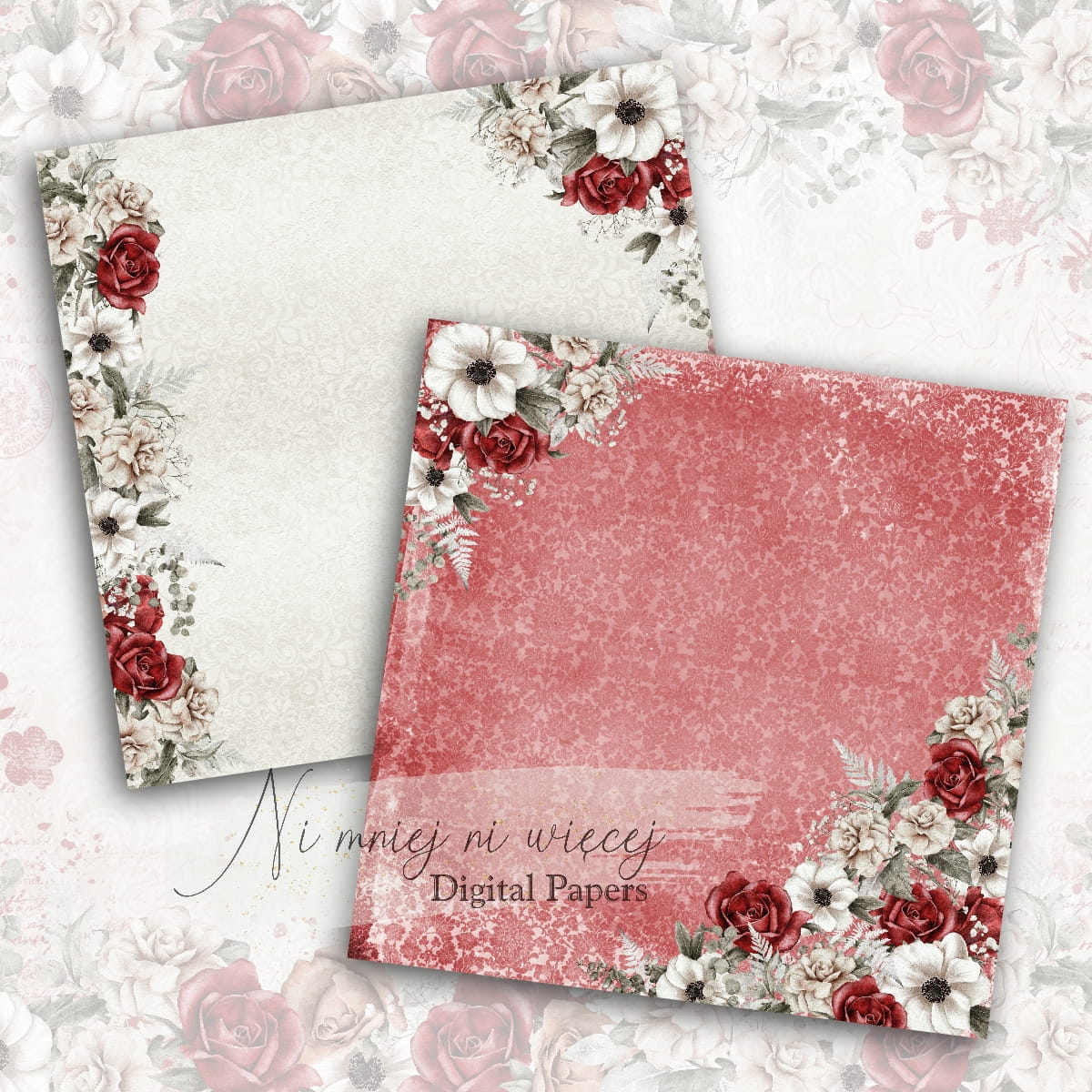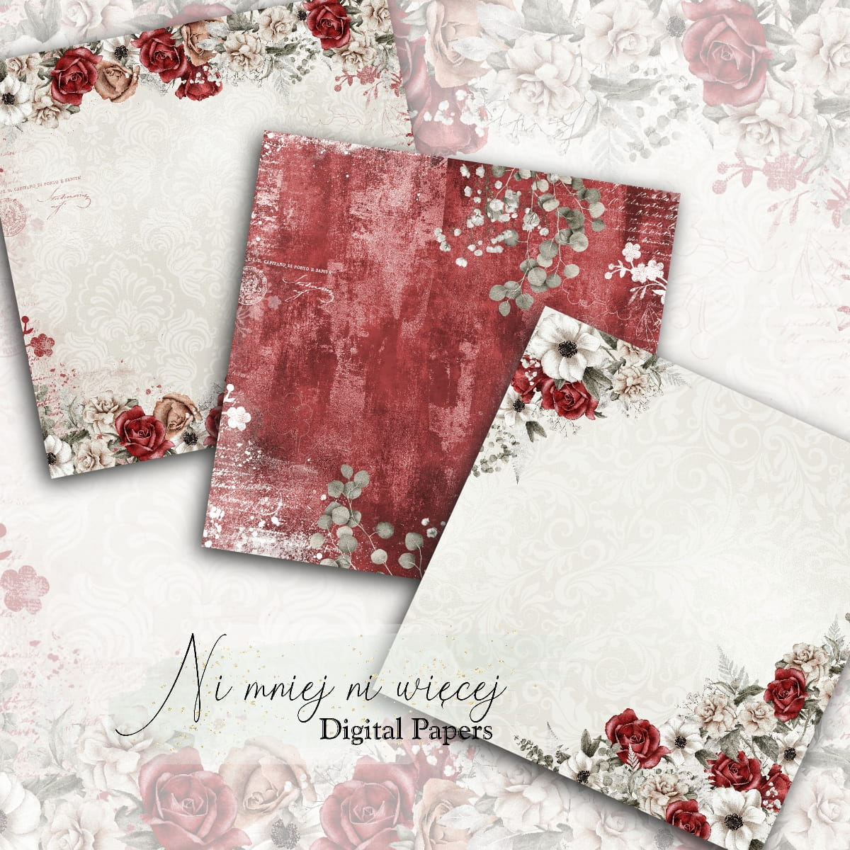 Kolekcja "Red Wine" zawiera 8 arkuszy plików cyfrowych do wydruku w rozmiarze kwadrat. Pliki są wysokiej jakości 300DPI, pod wydruk nawet w wielkości 30 x 30 cm.