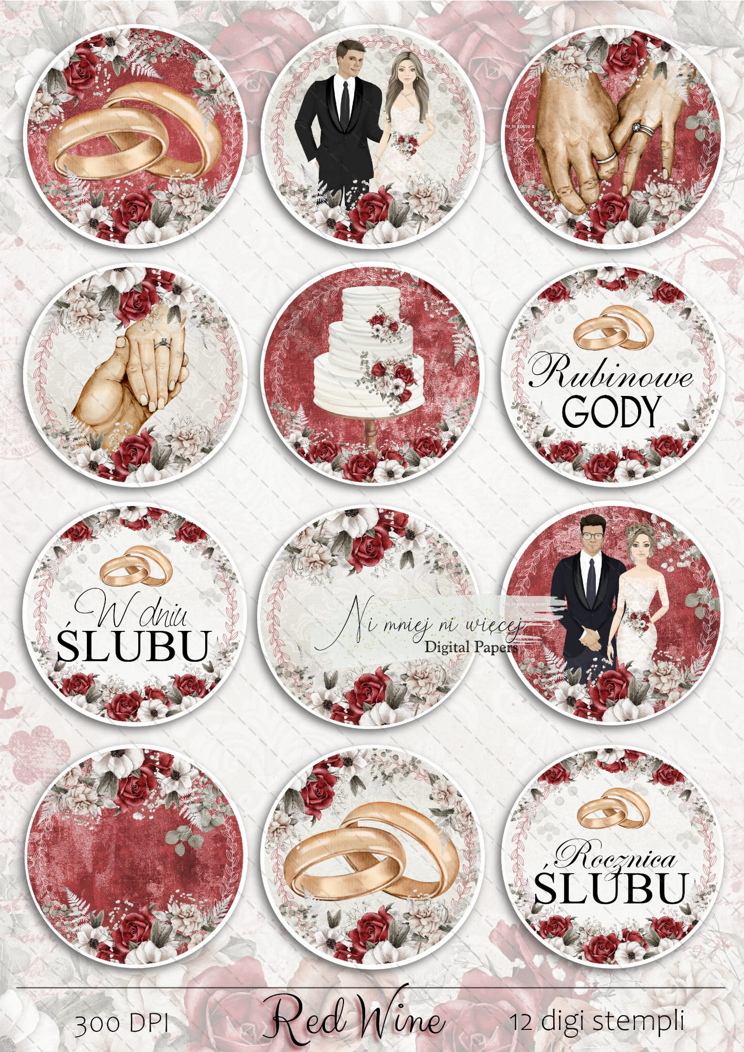 Kolekcja ślubnych / rocznicowych digi stempli z kolekcji Red Wine.