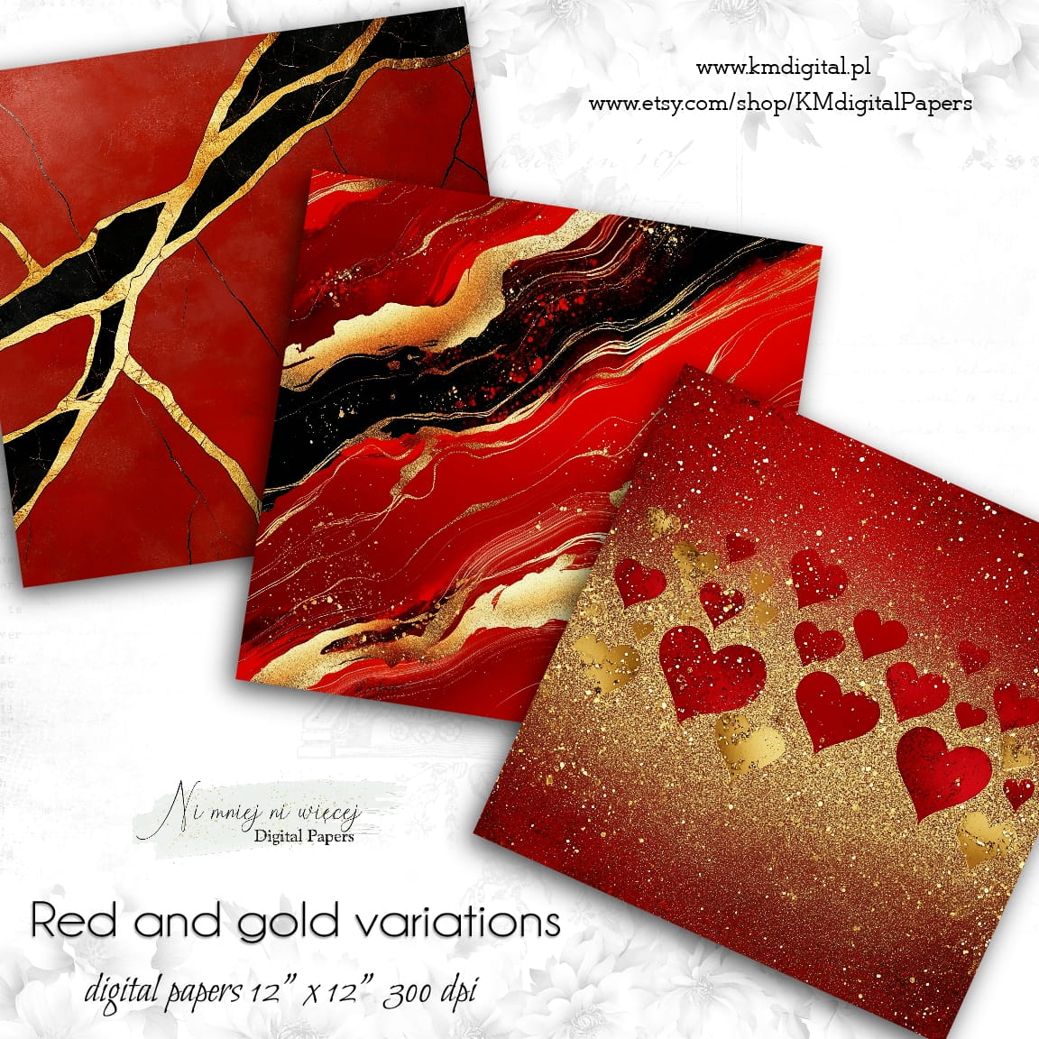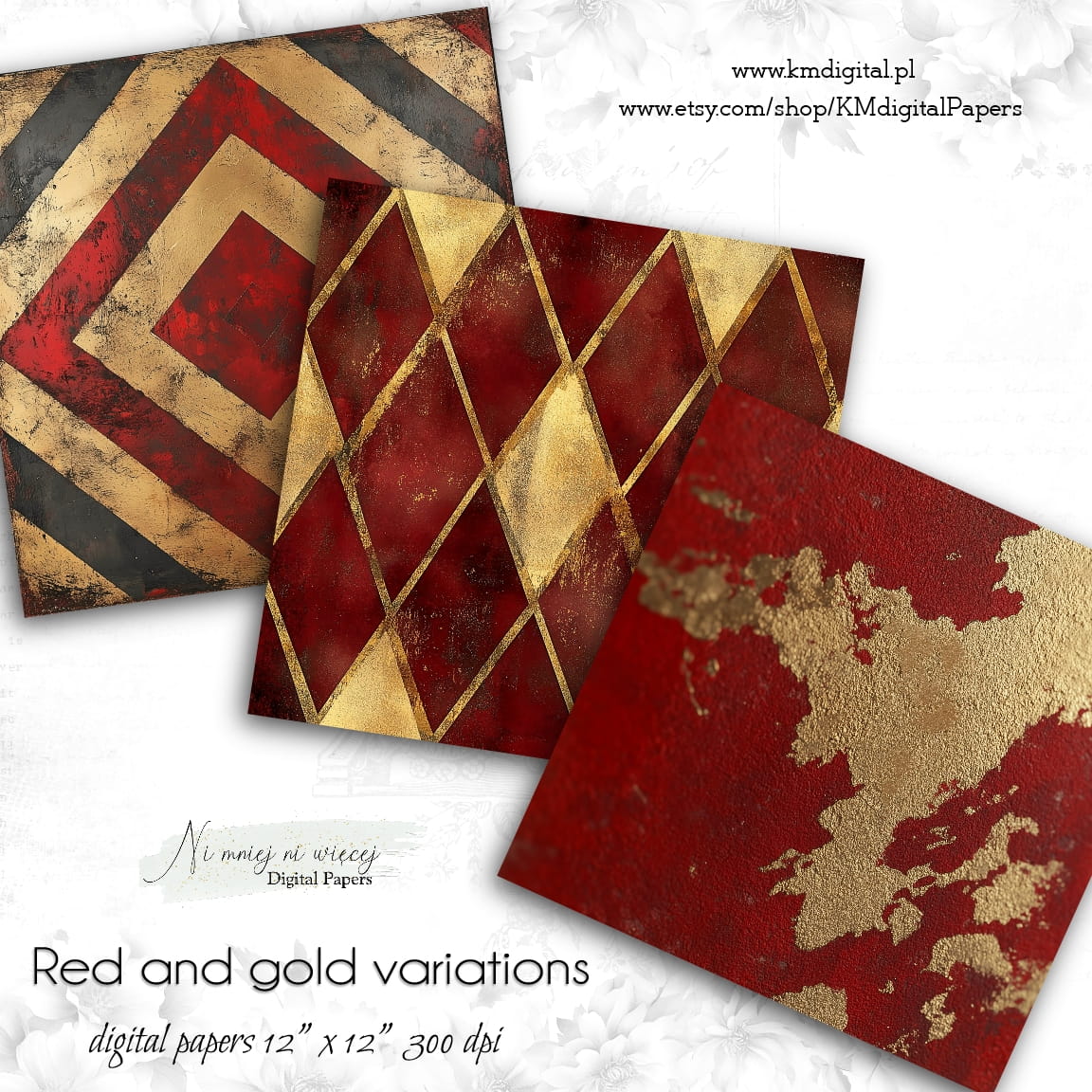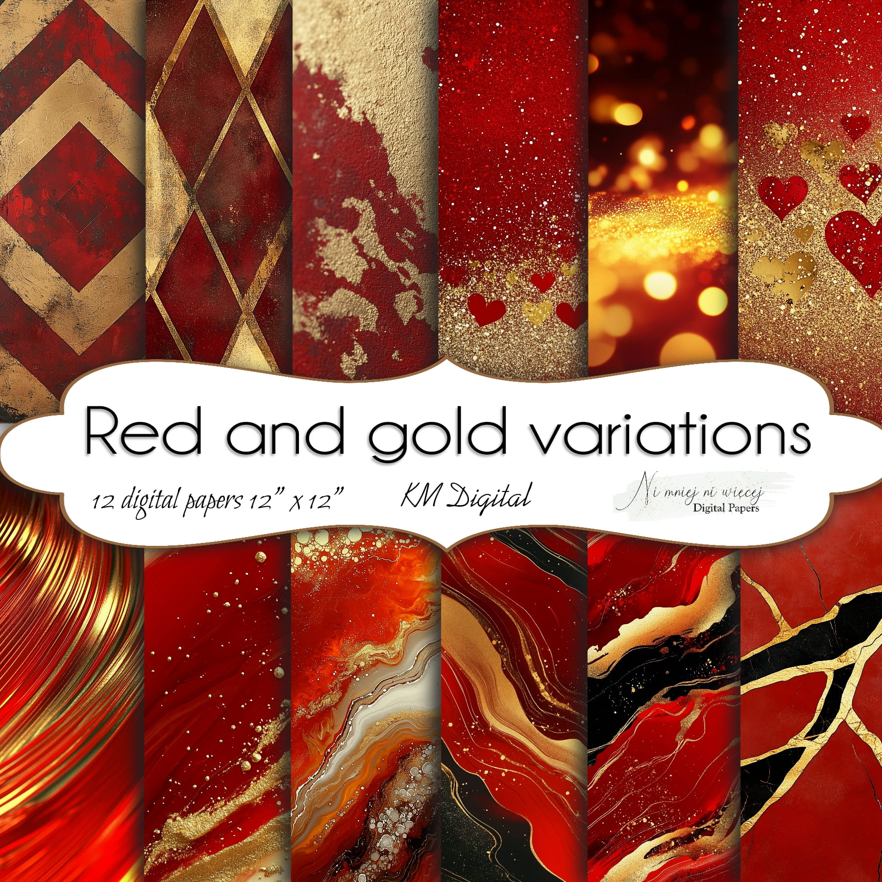 Red and Gold variations KWADRAT papiery do druku