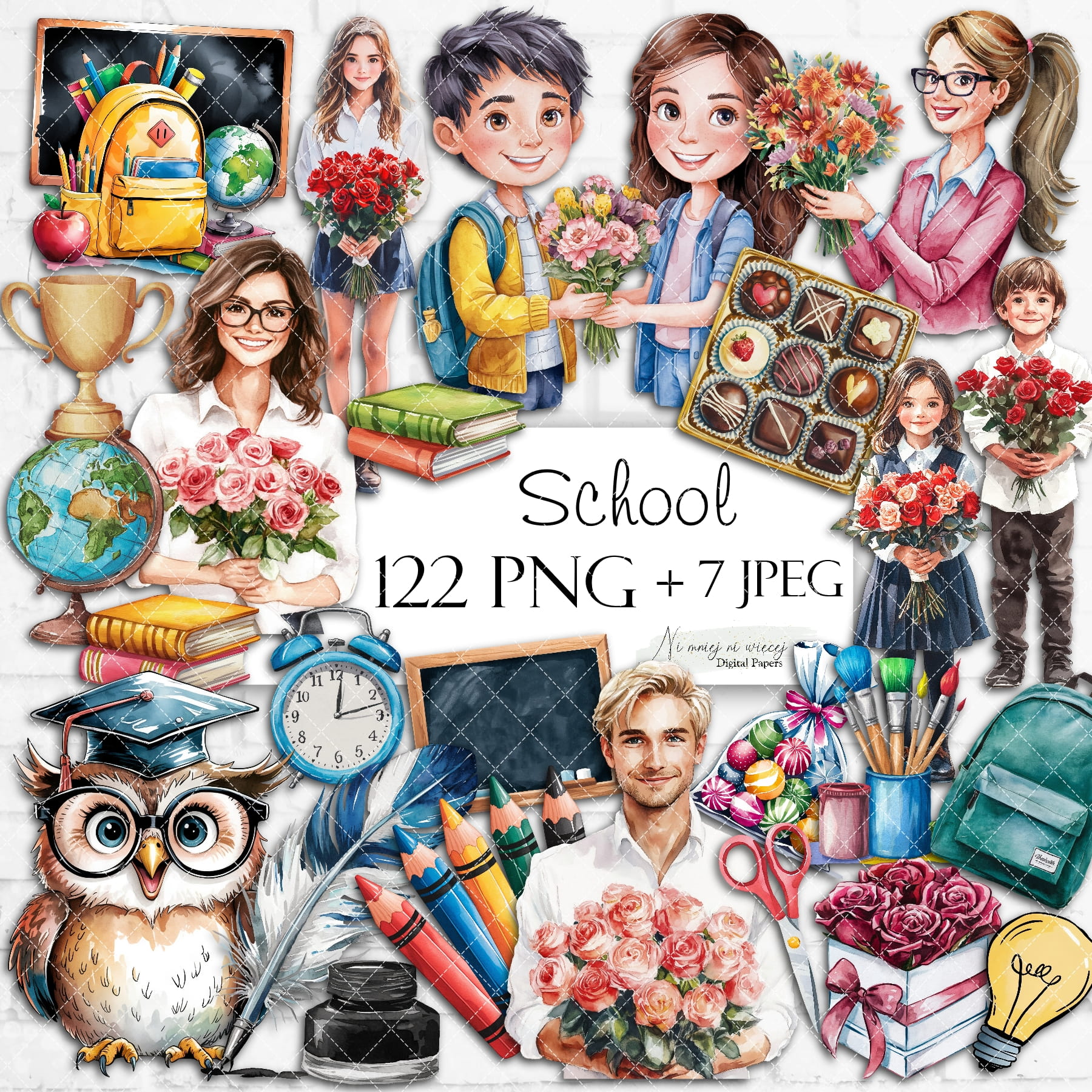 Kolekcja zawiera 7 arkuszy A4 JPEG grafik do samodzielnego wydruku i aż 122 grafiki PNG. Pliki są wysokiej jakości 300DPI.