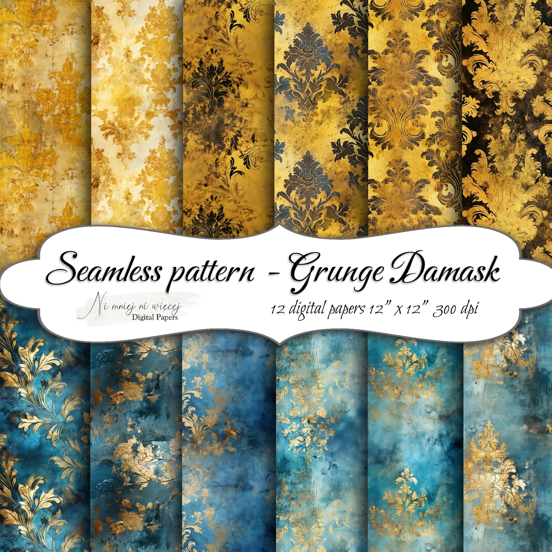 Kolekcja "Seamless Pattern Grunge Damask" zawiera 12 plików cyfrowych do wydruku w rozmiarze kwadrat. Pliki są wysokiej jakości 300DPI.