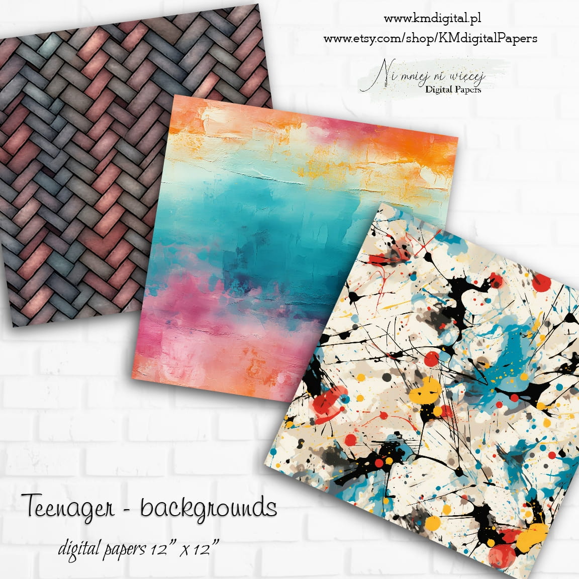 Kolekcja "Teenager background" zawiera 12 arkuszy plików cyfrowych do wydruku w rozmiarze kwadrat. Pliki są wysokiej jakości 300DPI.