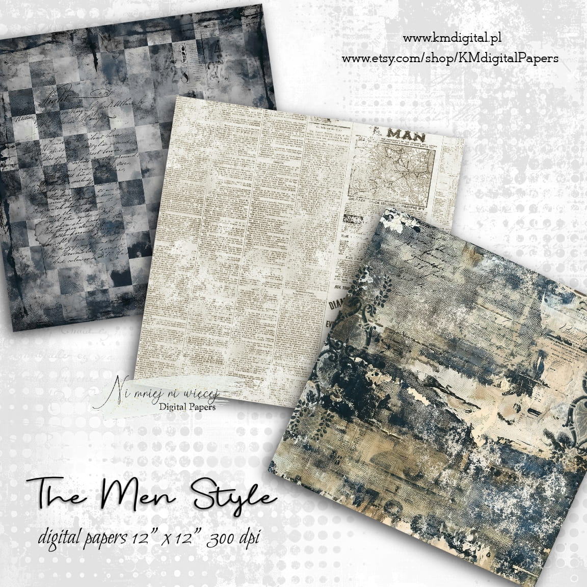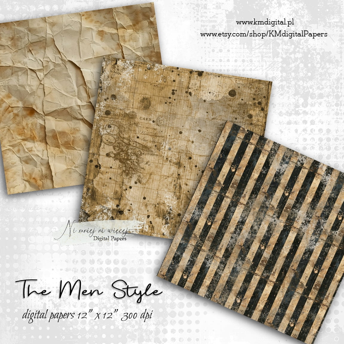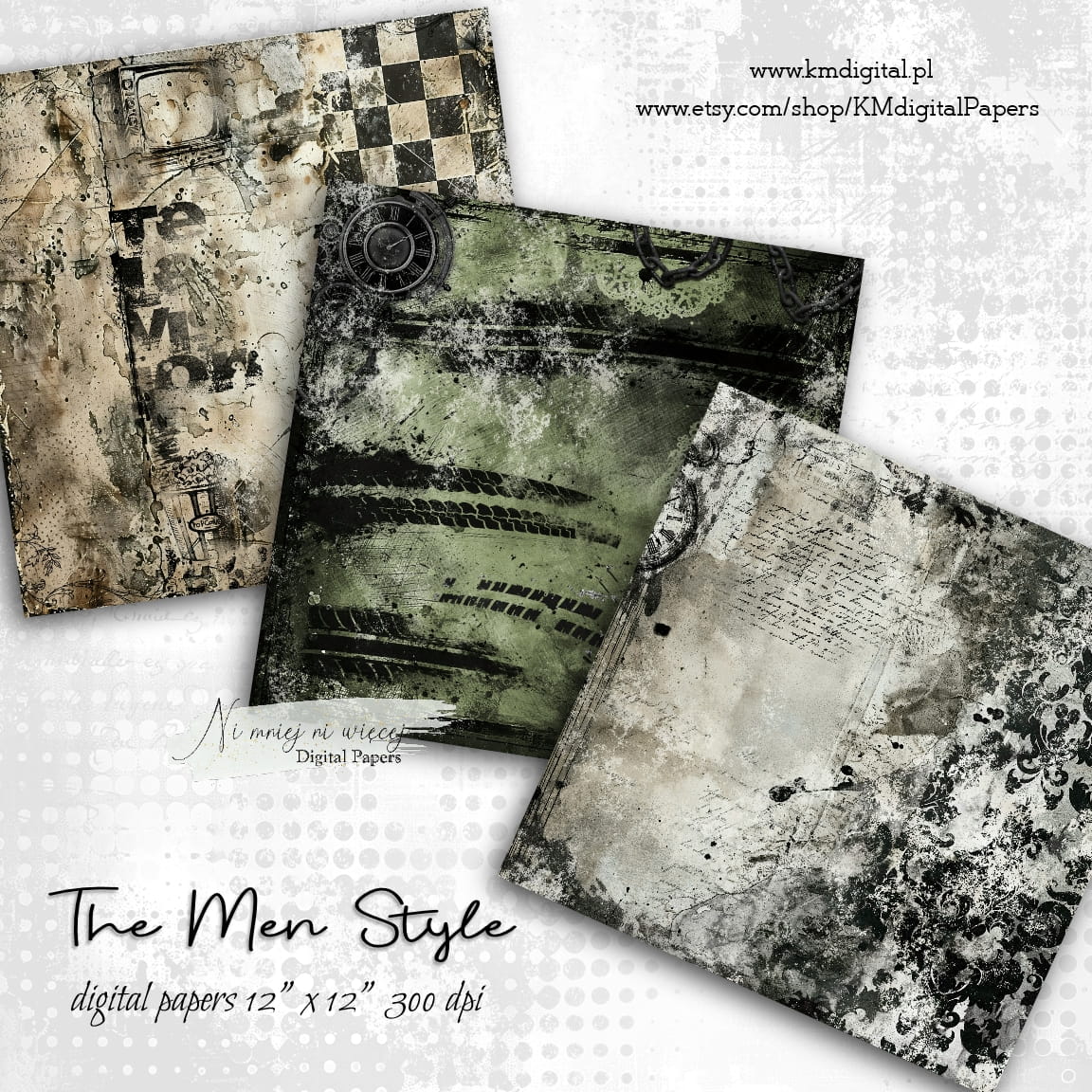 Kolekcja "The Men Style" zawiera 12 arkuszy plików cyfrowych do wydruku w rozmiarze kwadrat. Pliki są wysokiej jakości 300DPI.