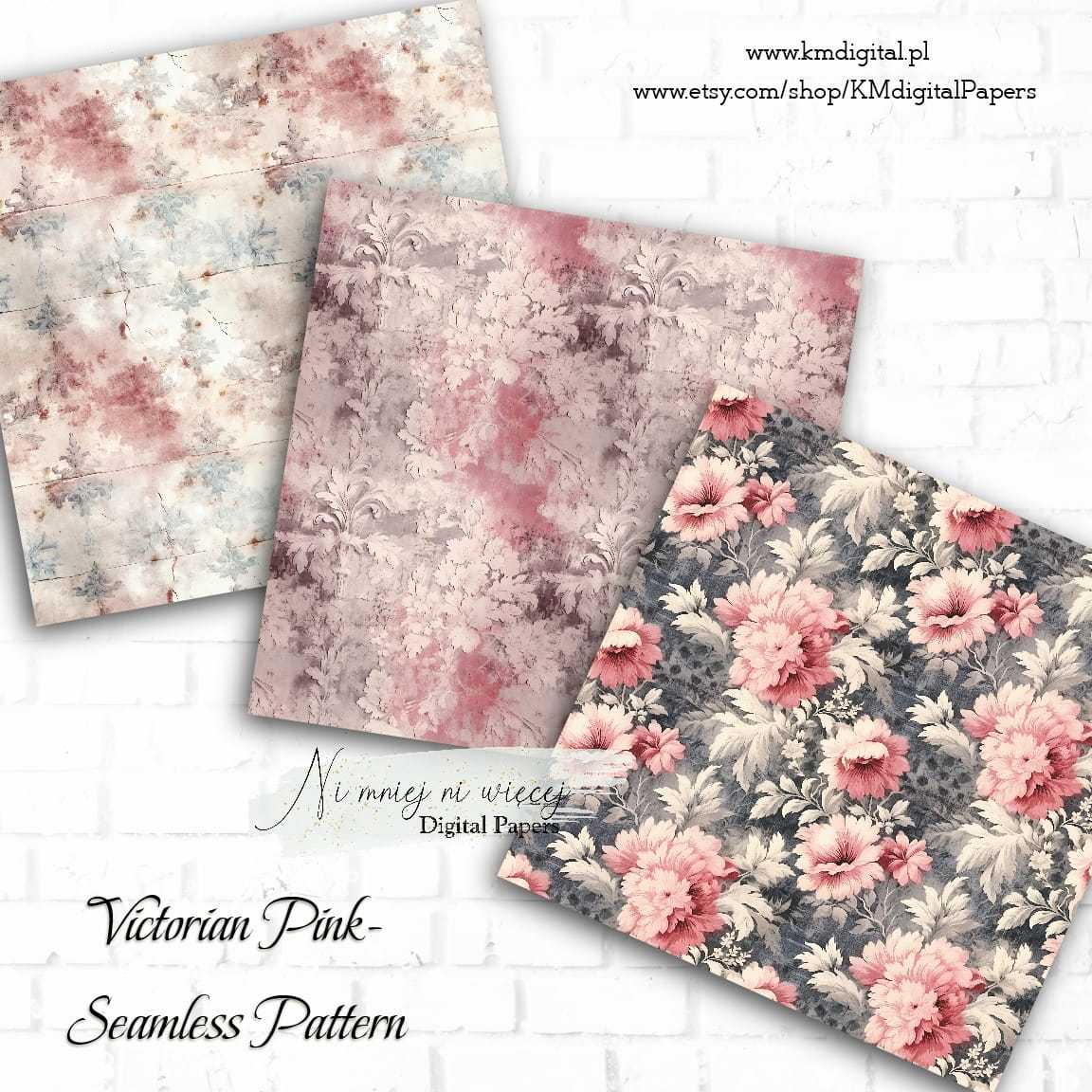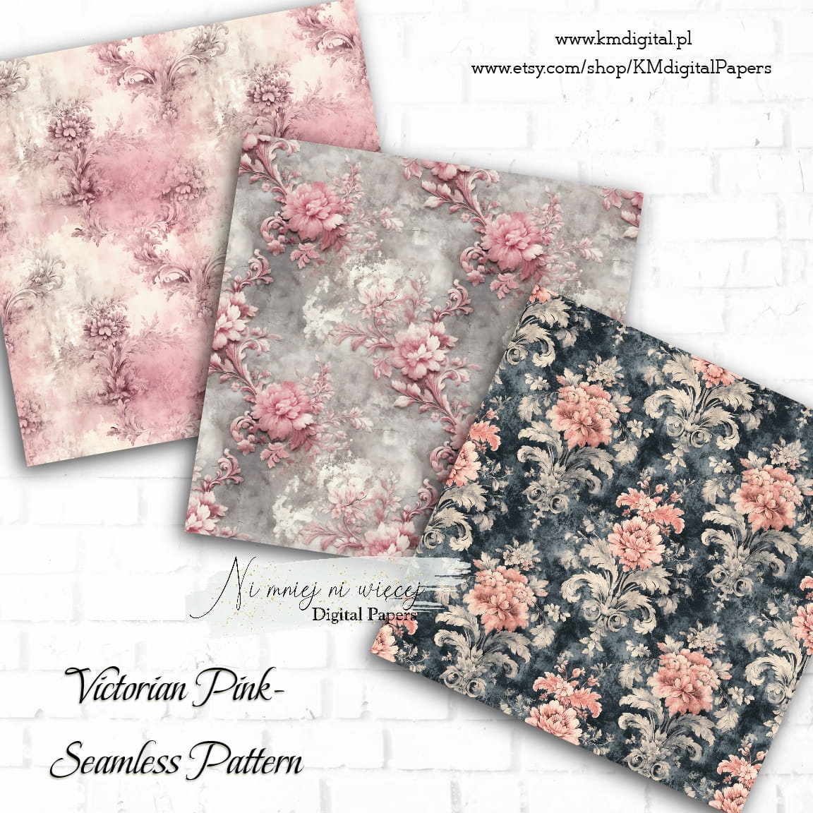 Kolekcja "Victorian Pink" zawiera 12 arkuszy plików cyfrowych do wydruku w rozmiarze kwadrat. Pliki są wysokiej jakości 300DPI.