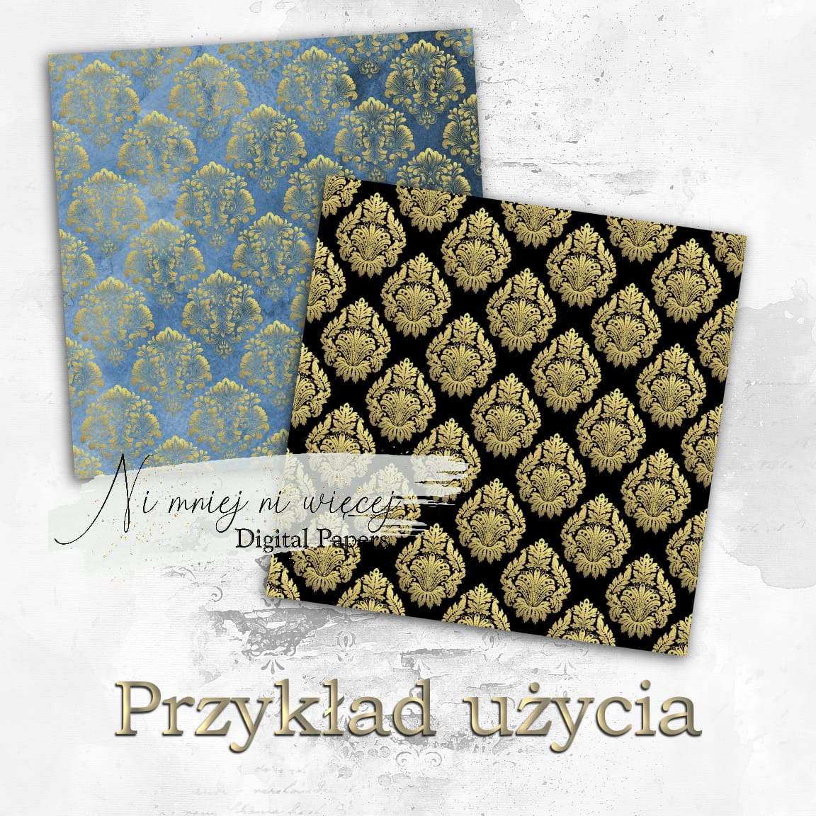 Możesz nałożyć nakładki w programie graficznym na dowolne tło i cieszyć się eleganckim złotym wzorem na zaproszenia, papier pakowy, pudełka, boxy itd.