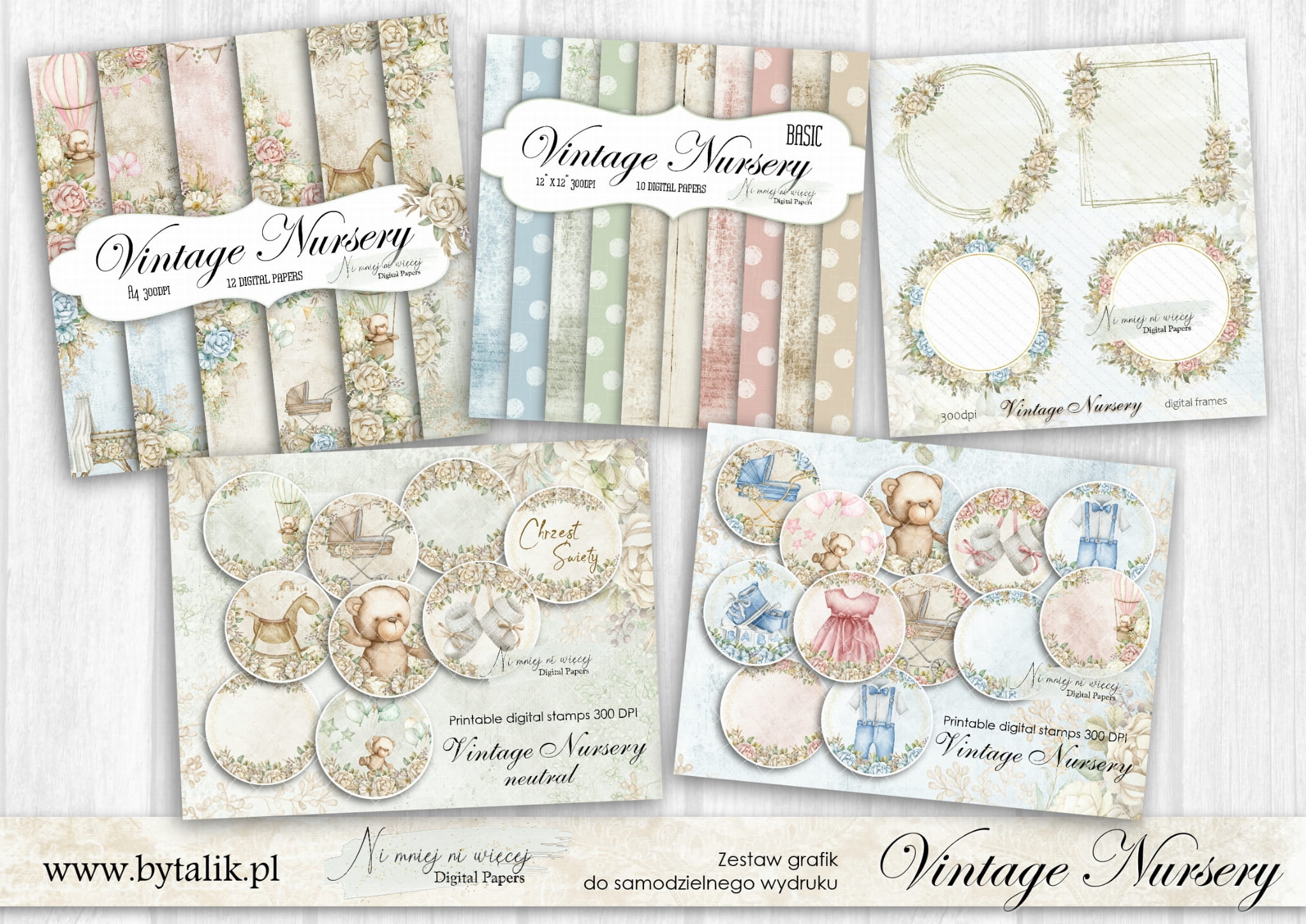 Vintage Nursery A4 zestaw powiększony