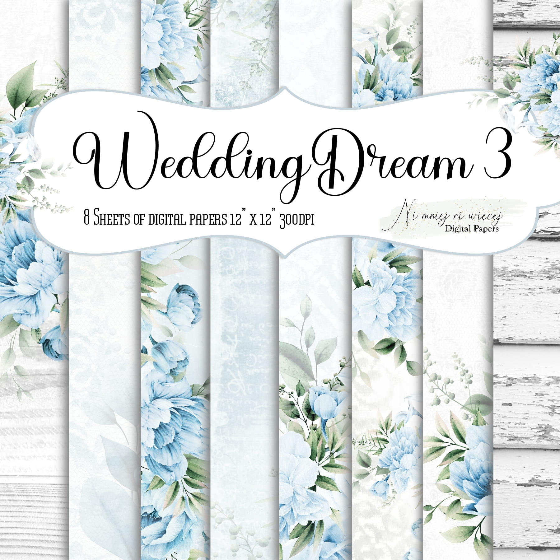 Kolekcja "Wedding Dream 3" zawiera 8 arkuszy plików cyfrowych do wydruku w rozmiarze kwadrat. Pliki są wysokiej jakości 300DPI, pod wydruk nawet w wielkości 30 x 30 cm.
