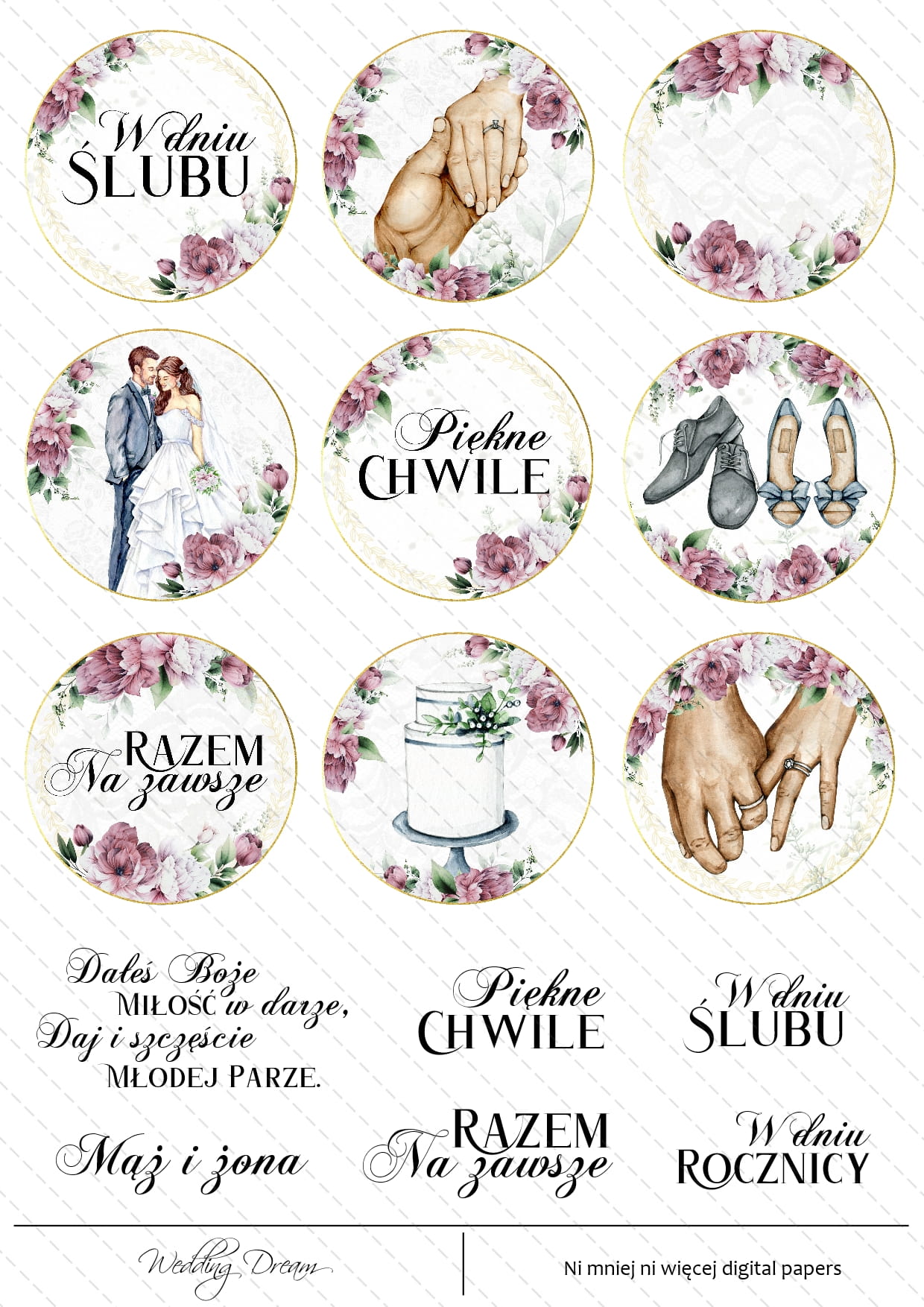 Kolekcja 9 digi stempli z kolekcji Wedding Dream.